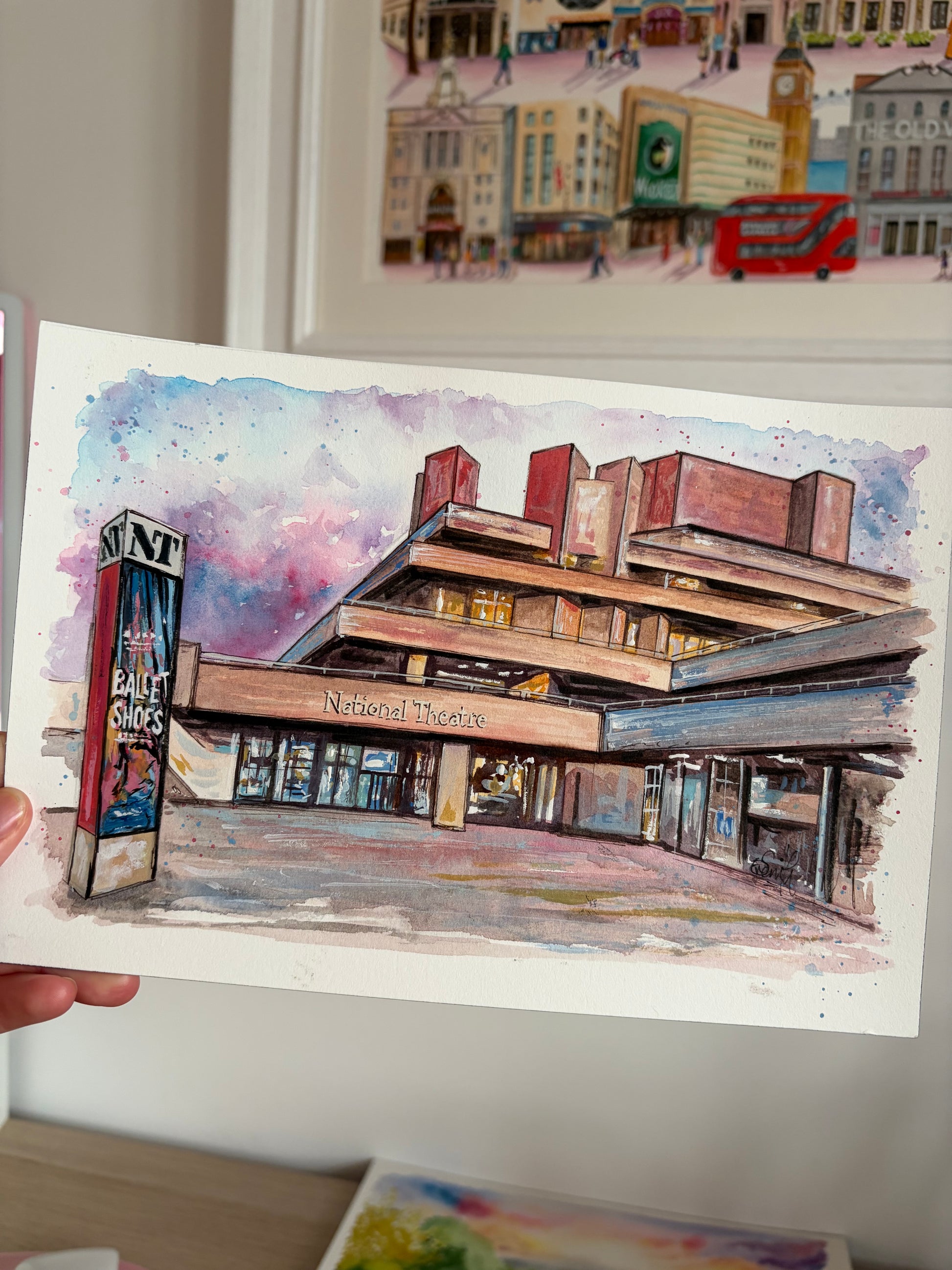 This original watercolour print of the iconic National Theatre in the heart of London's West End is well-known for being home to some of the best productions in the UK. This particular design features the recent show 'Ballet Shoes', but please feel free to pop me a message if you'd like to request something else (subject to time availability).
